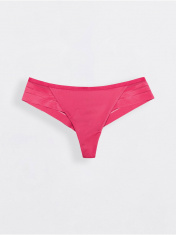 Трусики "танга" SPORT GLAM созданы в направлении «спортивный шик» и объединяют спортивный стиль полотна в полоску с женственной мягкостью конструктивных линий. Преимущества модели:- низкая линия талии;- хлопковая ластовица;- передняя деталь на подкладке;- нижние срезы задней детали без обработки.