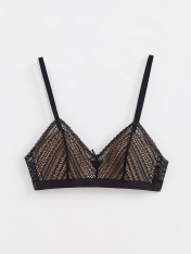 Бюстгальтер без каркасов Vintage RB7087 выполнен из кружева с ажурным орнаментальным рисунком и прямым краем. Чашки на подкладке из дубляжа с хлопком. Модная треугольная форма, безупречная посадка на фигуре и абсолютный комфорт – визитная карточка модели. • треугольная чашка на дубляже с хлопком • без каркасов • упругие пластины в боковых деталях стана • широкая тесьма по нижней линии • ажурное кружево с орнаментальным рисунком • регулируемые бретели • чувственное и очень комфортное белье • подойдет подросткам в качестве первого бюстгальтера.