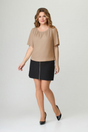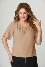 Бежевый блуз из вискозы и текстиля длиной 55 см DaLi 3480 капучино