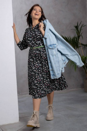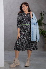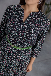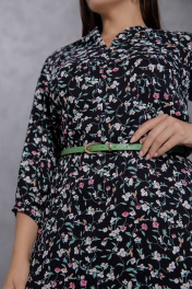 Невероятно функциональное и удобное платье, А - образного силуэта из натурального штапельного полотна стильной расцветки со съемным поясом. Воротник со стойкой. Рукав втачной со сборкой по окату.