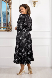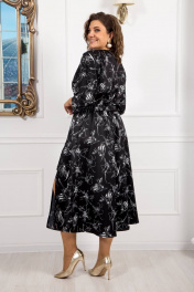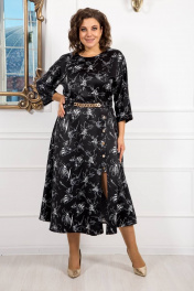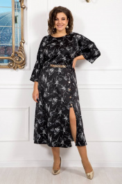Идеальное платье для торжественных мероприятий и романтических прогулок. Платье в длине миди из качественной плательной ткани с вискозой в составе. Горловина округлая с внутренней обтачкой и отделочной строчкой, по спинке глубокий разрез и застежка на навесную петлю и пуговицу. Крой рукава «кимано» делает платье очень привлекательным, рукав свободный. Платье отрезное по линии талии, частично на эластичной резинке шириной 3 см, по переду выполнен притачной пояс с декоративным элементом в виде цепочки, которую при необходимости можно снять. Декоративные элементы изящно подчеркивают линию талии, позволяя одновременно чувствовать себя комфортно и удобно. Нижняя часть платья в виде расклешенной юбки, легкой и струящейся. По переду юбки с левой стороны расположены притачные планки с отделочными строчками и застежкой на петли пуговицы. Длина застежки до колена, к низу платье с эффектным глубоким разрезом. Элегантное и летящее, оно обеспечит восторженные взгляды.
