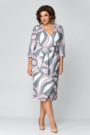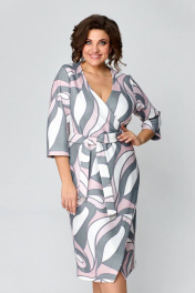 Платье с запахом – один из уникальных вариантов одежды, который не только скрывает недостатки фигуры, но и делает её стройнее. Оно способно превратить любую женщину в нежное и грациозное создание. Данное платье из теплого трикотажного полотна с оригинальным принтом. Ткань приятная к телу хорошо тянется. Едва ощутимое на теле, оно идеально сочетают в себе комфорт, тепло и женственность. Платье полуприлегающего силуэта длиной миди. V-образная горловина, созданная за счёт запаха, эффектно подчёркивает шею и слегка удлиняет её, а перечёркнутая по диагонали фигура визуально делается стройнее и выше, плечи сужаются, а талия становится отчётливее. Рукав одношовный длиной 3/4.Центральный шов спинки и рельефные линии по переду формируют приталенный силуэт и обеспечивают идеальную посадку изделия по фигуре, деликатно повторяя естественные изгибы тела. Талия эффектно подчёркнута съемным поясом. Благодаря своему крою, такое платье визуально преобразует любою фигуру в признанный стандарт красоты. Универсальное трикотажное платье прекрасно подходит для создания повседневных, деловых, романтических образов.