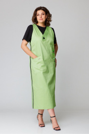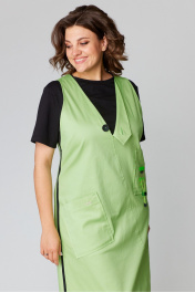 Джинсовые сарафаны создают стильный корректный образ. Их четкий силуэт делает полных женщин стройнее. Идеальный выбор для теплых дней, этот длинный миди-сарафан подходит как для офисного, так и для повседневного образа. Выполнен из мягкой х/б джинсовой ткани ,приятное к телу, прекрасно держит форму. Этот женский летний сарафан из джинсовой ткани - воплощение стиля и комфорта. Сочетание прямого кроя и однотонного дизайна делает его универсальным элементом гардероба. Сарафан с V- образной горловиной с углубленной проймой. Стилизованное расположение накладных карманов, рельефных линий и настрочной тесьмы придают индивидуальность и современный стиль образу. Легкое прилегание силуэта достигается эластичной тесьмой со стороны спинки. Свободу шага обеспечивает разрез по центру спинки. Джинсовый миди-сарафан дополнен качественной комфортной к телу футболкой с коротким рукавом и округлой горловиной. Подчеркни свою индивидуальность с этим модным и стильным хлопковым нарядом, который не только подчеркнет твою женственность, но и станет незаменимым элементом гардероба на весенне-летний период!