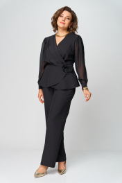 Супер-функциональный нарядный комплект, который состоит из нарядной блузки и брюк. Блузка – универсальная вещь в гардеробе женщины. Необычайно женственна, стольже переменчива и привлекательно вписывается в образ прекрасной дамы блузка с запахом. Стилисты ценят этот предмет одежды за то, что в его силах создавать множество эффектных луков, начиная от повседневных и заканчивая вечерними. В модели скомбинированы две фактуры ткани. Наша блуза с объемными шифоновыми рукавами на манжетах. Модель приталенного силуэта. Запах образует на блузке V-образный вырез, который хорошо подчеркивает шею, несколько удлиняет ее, делая линию плеча более узкой, а фигуру в целом – стройнее. Кроме того, за счет запаха талия визуально сужается и силуэт становится более приближенным к идеальной фигуре – песочные часы. Такой верх можно успешно сочетать с брюками, юбками, шортами, формируя образ деловой романтичной, активной и утончённой дамы. Мы в свою очередь предлагаем брюки прямого сводного силуэта с классической посадкой на талию, пояс притачной с частично вставленной резинкой, по переду застежка на петлю/пуговицу и шлевки для вдевания ремня. По переду расположена застежка (гульфик) на молнии. По бокам накладные карманы (хулиганы) Наш костюм подчеркнет вашу индивидуальность и позволит создать безупречный стиль.
