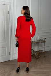 Нарядное платье из текстиля с драпировкой и высоким разрезом DAVA 1197 красный