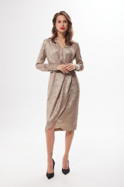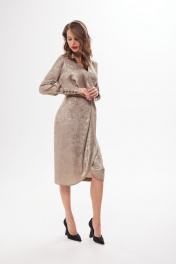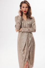 Платье из текстиля с блестящим напылением и запахом DAVA 1198 бежевый