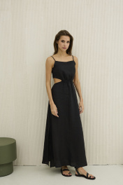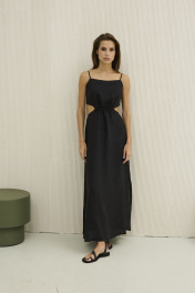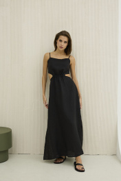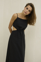 Приталенное платье лен с бретелями и разрезами DAVA 147 черный
