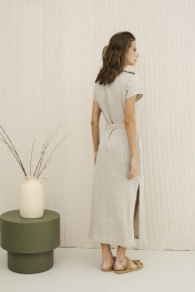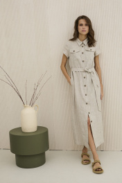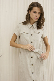 Платье из льна на каждый день с карманами и поясом DAVA 158 беж