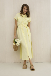 Платье прямого силуэта из льна и вискозы с карманами DAVA 158 желтый