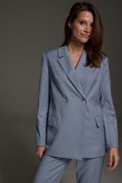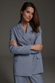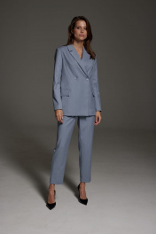 Деловой костюм из текстиля с двубортным жакетом и карманами DAVA 161 серо-голубой