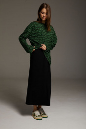 Комплект джемпер и юбка свободного силуета из вискозы DAVA 182/1 черный-зеленый