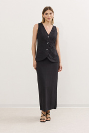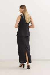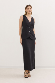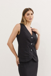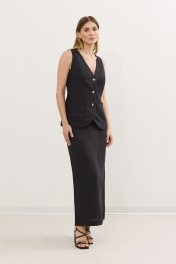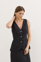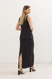 Жилет и юбка летний комплект из льна с резинкой DAVA 2212 черный