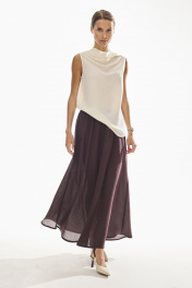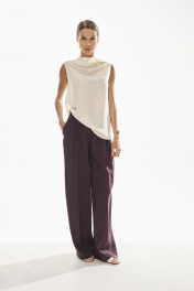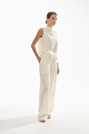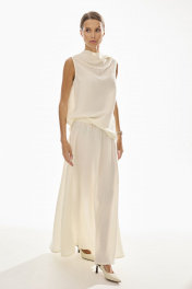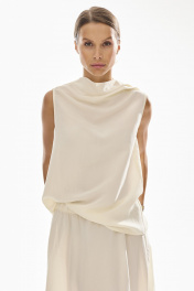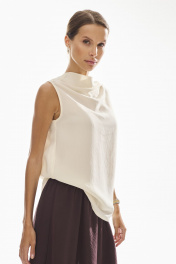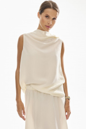 Блузка женская полуприлегающего силуэта , выполненная из качественной вискозы . Горловина в виде драпировки . В верхней части спинки разрез с пуговицей.