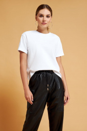 Эко-кожаные брюки с эластичным поясом и шнуром DAVYDOV 8033
