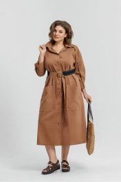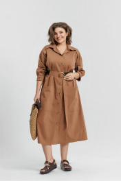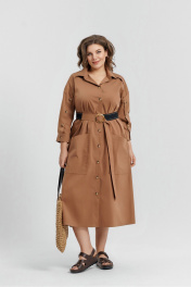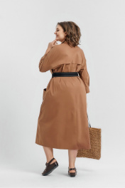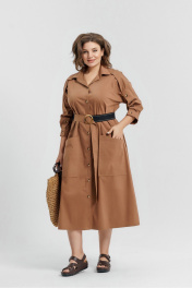 Платье женское свободного силуэта из хлопкой ткани. Застежка на петли и пуговицы, воротник рубашечного типа, рукав втачной на спущеном плече с манжетой с застежкой на петли и пуговицы по всей длине. По переду и спинке кокетки с складкой. По переду накладные карманы. Платье дополнено сьемным комбинированым поясом из основной ткани. Фурнитура может меняться.
