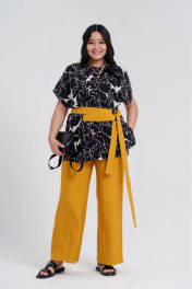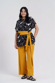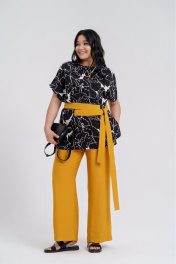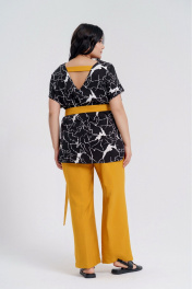 Желтый и черный комплект из блузы и брюк на каждый день Deesses 2295