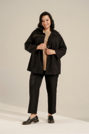 жакет и брюки: полиэстер-90%, вискоза-10%; блуза: вискоза-65%, нейлон-30%, спандекс-5%
