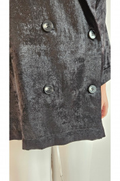 Комплект женский трехпредметный. Жакет без подкладки прямого силуэта, застежка двубортная на петли и пуговицы. Воротник пиджачного типа. Рукав отрезной на базе цельнокроеного, по низу манжет. Дополнен съемным украшением. Брюки прямые, в боковых швах карманы с отрезным бочком. Пояс отрезной с эластичной тесьмой. Блуза из атласной ткани с цельнокроеным коротким рукавом. Вырез горловины - неглубокий, округлой формы.