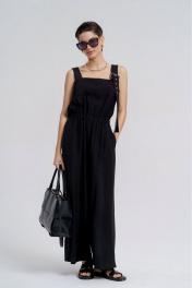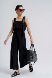 Комбинезон женский на регулируемых шлейках. Эластичный пояс, спинка отлетная, с карманами в боковых. Широкие штанины. Длина брюк от линии талии - 95 см.