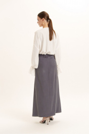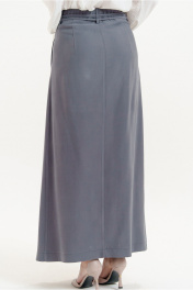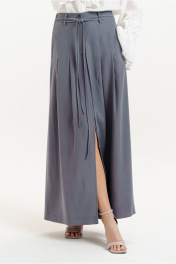 Юбка женская из легкой , струящейся ткани "тенсел", юбка длинны миди с карманами в боковых швах и складками по переду. Пояс со шлевками и застежкой на молнию и петлю и пуговицу. По центру переднего полотнища обработан разрез. Юбка декорирована съемным шнуром из основной ткани.