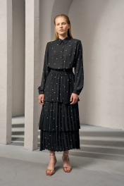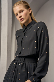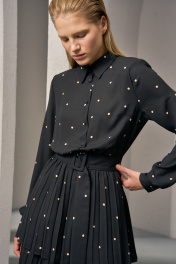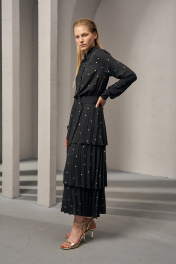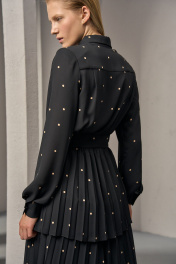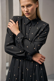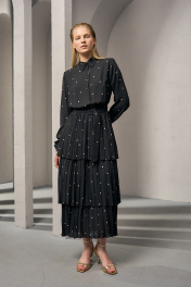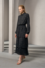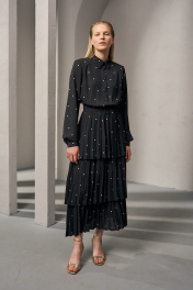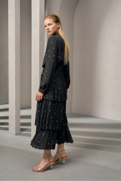 Платье из плотного шифона с горохом и складками DEVITA 1012 черный