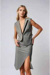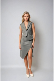 Серая юбка-карандаш из вискозы с асимметричным разрезом DEVITA 2005-1 серый