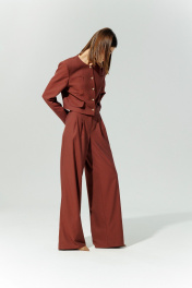 Брюки палаццо классического кроя из текстиля для делового образа DEVITA 3015 винный - фото 10