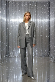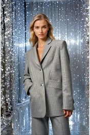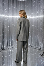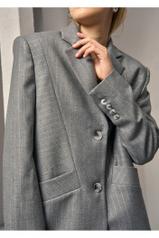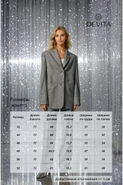 Классический, элегантный и стильный однобортный жакет в дизайнерском прочтении. Объемный чёткий крой в стиле YSL. Пиджак выполнен из костюмной вискозной ткани премиум класса в полоску с серебрянной нитью. Прямой силуэт с чёткой, слегка расширенной линией плеча. Аккуратные лацканы с заострёнными углами. Ключевой деталью переда являются рельефные швы, на которых полоски расположены с разным наклоном, а также карманы с широкими листочками. Спинка со средним и рельефными швами, заканчивающейся шлицей. Рукава втачные, двухшовные. Локтевые швы заканчиваются шлицами с пуговицами. На вискозной подкладке жакета обработан внутренний карман. Статусная вещь в стиле Old money с различными вариантами стилизации и комплектации с брюками 3017-1 и юбкой 2011 из аналогичной ткани и цвета, для создания полного комплекта от бренда DEVITA. Измерения готового изделия расположены в табличке с фотографиями.