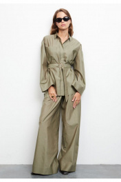 Элегантная и воздушная рубашка, созданная из шикарного комбинирования шёлка (58%) и хлопка (42%), обеспечит вам непревзойдённый комфорт и лёгкость. Сочетание классического стиля с элементами модного дизайна делает эту удлиненную блузку универсальной и подходящей для различных случаев. Прямой силуэт. Широкий длинный рукав на спущенной пройме. Аккуратная потайная застёжка на планку с пуговицами. Воротник стояче-отложной с акцентной пуговицей на стойке. Накладные карманы по линии груди. На спинке кокетка с центральной складкой. Широкая подгибка низа изделия и рукава. В комплекте пояс с полукольцами закреплен узкими шлёвками в боковых швах. Статусная вещь с различными вариантами стилизации в стиле old money. Составят богемный образ в паре с брюками палаццо из аналогичной ткани и цвета арт. 3011-4. Измерения готового изделия расположены в табличке с фотографиями.