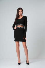 Платье женское прилегающего силуэта длиной ниже колена. Спинка отрезная по линии талии. Перед с разрезом по линии талии оформленным декоративной тесьмой. Длина по спинке 84 см, длина рукава 65 см.