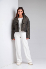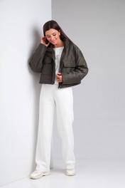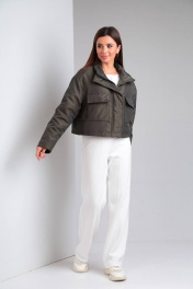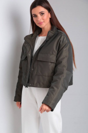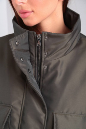 Куртка женская, прямого силуэта, с центральной застежкой на тесьму-молнию и ветрозащитной планкой с застежкой на потайные кнопки. По переду накладные карманы с клапанами. Спинка с кокеткой. Рукав втачной, двухшовный. На локтевой части-вытачка. Воротник- стойка. Низ изделия обработан обтачкой-кулиской, с резинкой и фиксаторами. Подкладка стеганая синтепоном. В качестве отделки используется отделочная строчка.