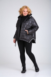 Демисезонная женская куртка из непромокаемого материала с капюшоном Диомант 1930 черный