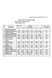 Костюм женский 2-х предметный, состоящий из жакета и брюк. Жакет полуприлегающего силуэта, длинной ниже линии бедер. Спинка с таллиевыми вытачками и средним швом. Перед с нагрудными вытачками, переведенными в линии плечевого шва и накладными карманами. Жакет с центрально-бортовой застежкой на одну петлю-пуговицу и воротником пиджачного типа. Жакет на подкладке. Рукава втачные, двух-шовные , стандартной длины. Брюки классической формы, зауженные к низу, на притачном поясе. ЗП брюк с таллиевыми вытачками. ПП брюк с вытачками, боковыми карманами-хулиганами и застежкой на тесьму-молнию в среднем шве брюк. Пояс брюк со шлевками, застегивающийся на пуговицу. Сзади по поясу вставлена резинка. Длина рукава жакета — 63 см Длина жакета — 72,3 см Длина брюк — 105 см