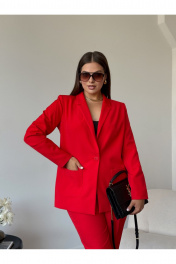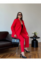 Летний деловой костюм из вискозы: жакет и брюки с талевыми вытачками Dilana VIP 2056/1 красный