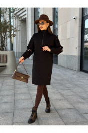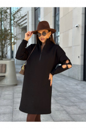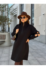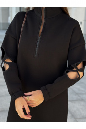 Черное трикотажное платье с молнией и цветочным рукавом Dilana VIP 2058 черный