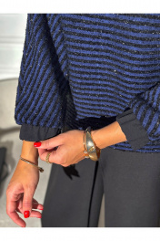 Джемпер: ПЭ - 95%, Спандекс - 3%, Метал.нить - 2% Брюки: Вискоза – 55 %, ПЭ - 41%, спандекс – 4%
