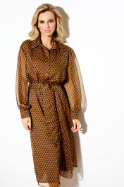 Платье на подкладке из плательной ткани с ремнем DILIA 0585 коричневый