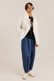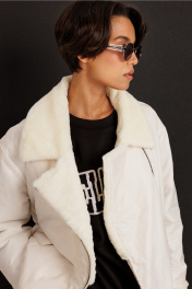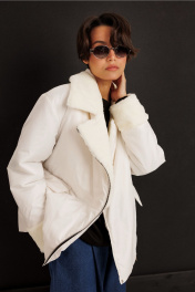 Демисезонная куртка из плащевой ткани с меховыми акцентами DILIA 0630-1 кремовый