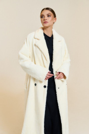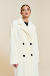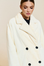 Пальто из короткого искусственного меха с двубортной застежкой и лацканами DILIA 0649-2 кремовый