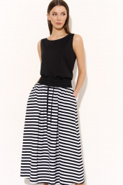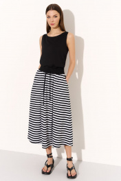 Трикотажный костюм майка и юбка с поясом DILIA 0745 черно-белая_полоска
