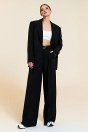 Черные брюки палаццо из легкой ткани с карманами-хулиганами DILIA 0764 черный
