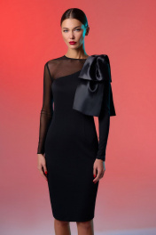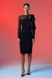 Нарядное платье из трикотажа с вырезом и бантом DILIA 0792 черный