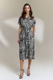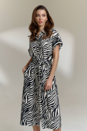 Платье с поясом-завязкой и карманами на боковых швах DILIA 0817 мультидизайн