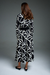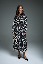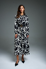 Деловое приталенное платье с поясом и длинным рукавом DILIA 0897 мультидизайн