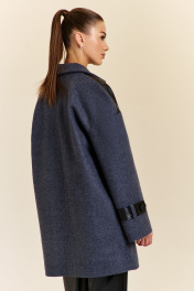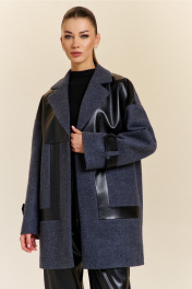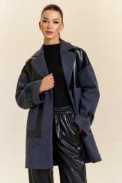 Тренч женский прямого силуэта со спущенной линией плеча. На подкладке. Перед пальто комбинирован вставками из экокожи. Также по переду выполнены прорезные карманы с листочкой. Рукав расширенный к низу, на нем расположена пата из экокожи.