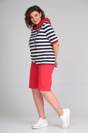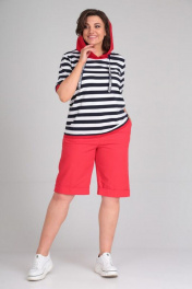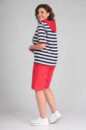 Блуза, шорты Диомант 1874 коралл_широкая_полоска - фото 3