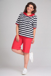 Блуза, шорты Диомант 1874 коралл_широкая_полоска - фото 2