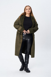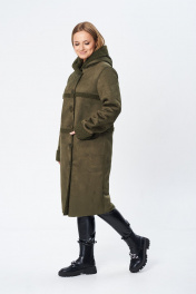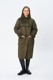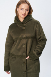 Пальто зимнее, полуприлегающего силуэта с центральной застёжкой на петли-пуговицы,с капюшоном. По полочкам и спинке- горизонтальные рельефы по линии груди и бёдрам. Рукав - втачной одношовный.Материал искусственный дубляж. Температурный режим до -5 градусов. Длина по спинке 103-105 см. , длина рукава 71-72 см.