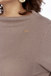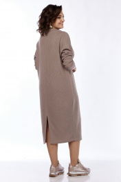 Платье женское, полуприлегающего силуэта, по спинке средний шов, заканчивающийся внизу разрезом. Пройма квадратная, рукав втачно одношовный, зауженный к низу. Воротник- цельнокроенная стойка с расширенной горловиной. В качестве отделки используется фурнитура и съемный пояс. В 56, 58 и 60 р. нет пояса в комплекте!!!