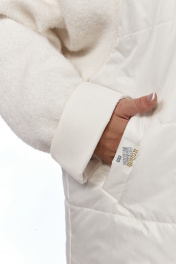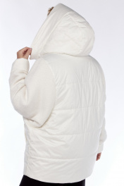 Стильная женская куртка, полуприлегающего силуэта с центральной застежкой на тесьму-молнию. По переду прорезные карманы с листочкой. Спущенная линия проймы. Рукав втачной одношовный из отделочной ткани, длинный с отворотом по низу. Капюшон с отделочной деталью по отлету, объемный. Куртка на подкладке. Используется основной материал -плащевка (плотность 70 гр/м2). В качестве отделки -теплая ткань с мягким ворсом. Утеплитель Hoopon (плостность 150 г/м2). Подходит под температурный режим до -5 градусов. Для отделки используется фурнитура и отделочная строчка. Длина по спинке 75 см, длина рукава 69 см 54 56 58 60 62 Длина изделия 73 73 75 75 75 Ширина изделия по линии талии 65 67 69 71 73 Ширина изделия по линии бёдер 66 68 70 72 74 Ширина спины 40 40,5 41 41,5 42 Ширина плеча 11 11 11 11 11 Длина рукава 68 68 69 69 69